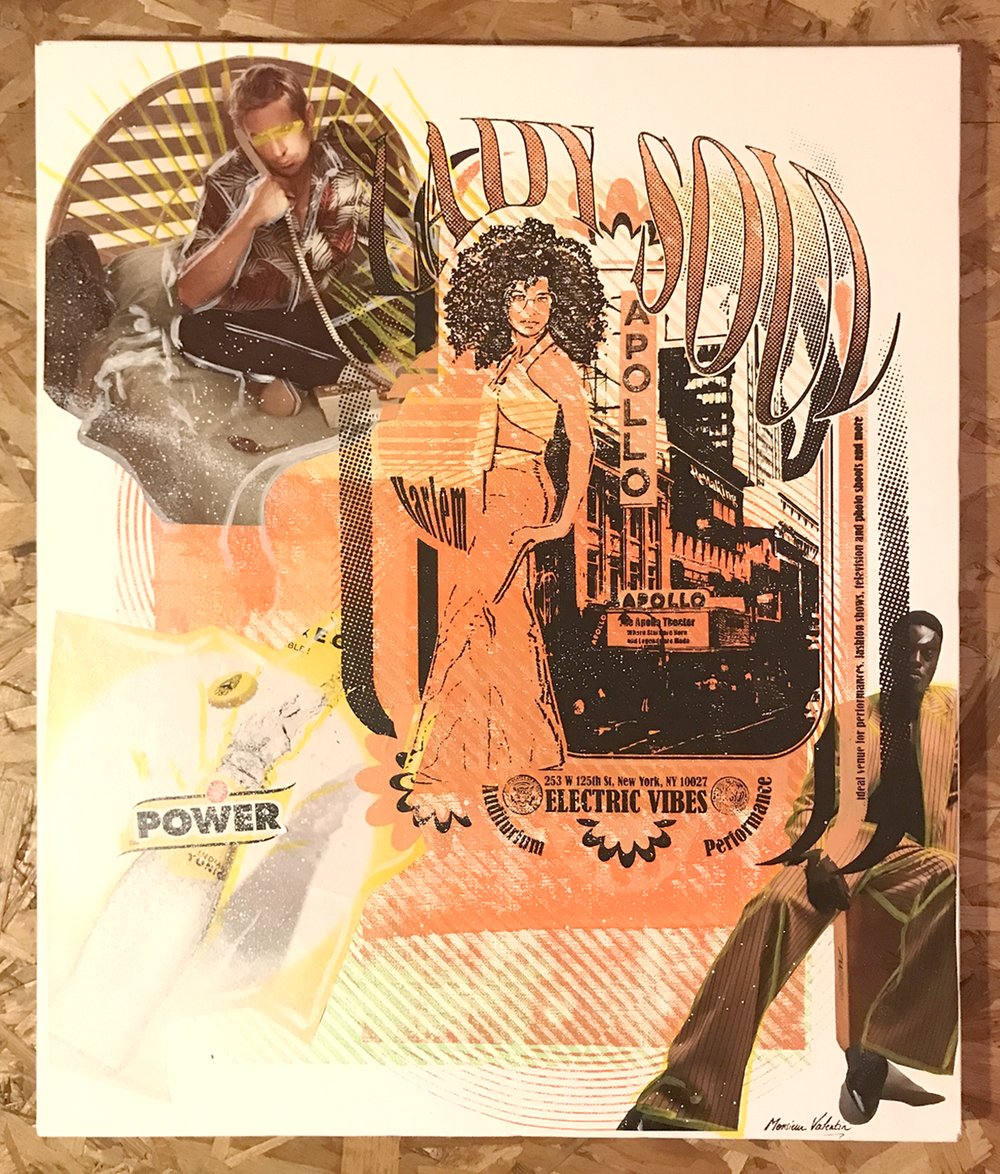 Technique : Peintures, sérigraphie, collages et dessins